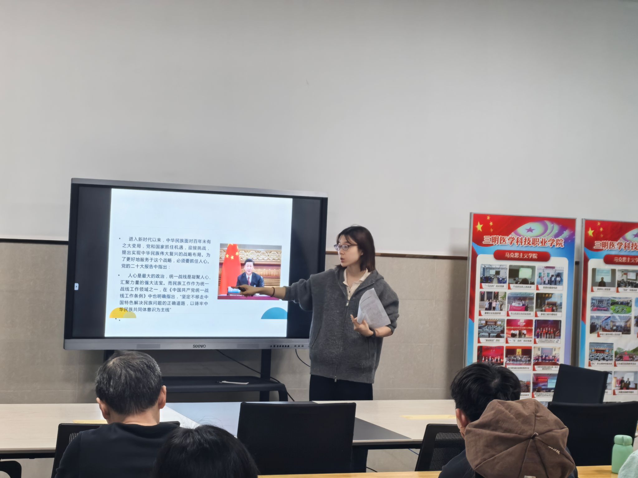2025年11月13日下午,毛中特教研室开展“中华民族共同体意识融入思政课程”教学实务研讨活动,马院全体思政教师集体参加。