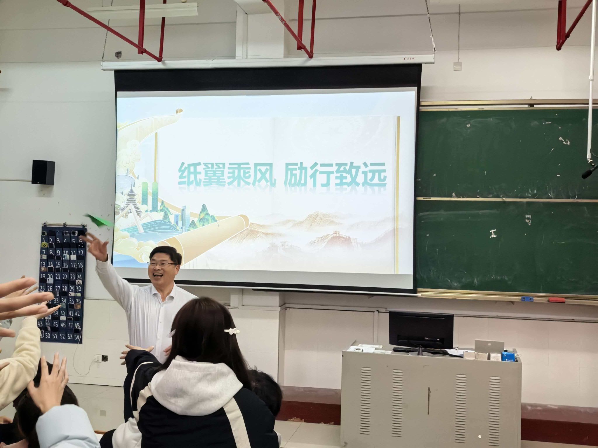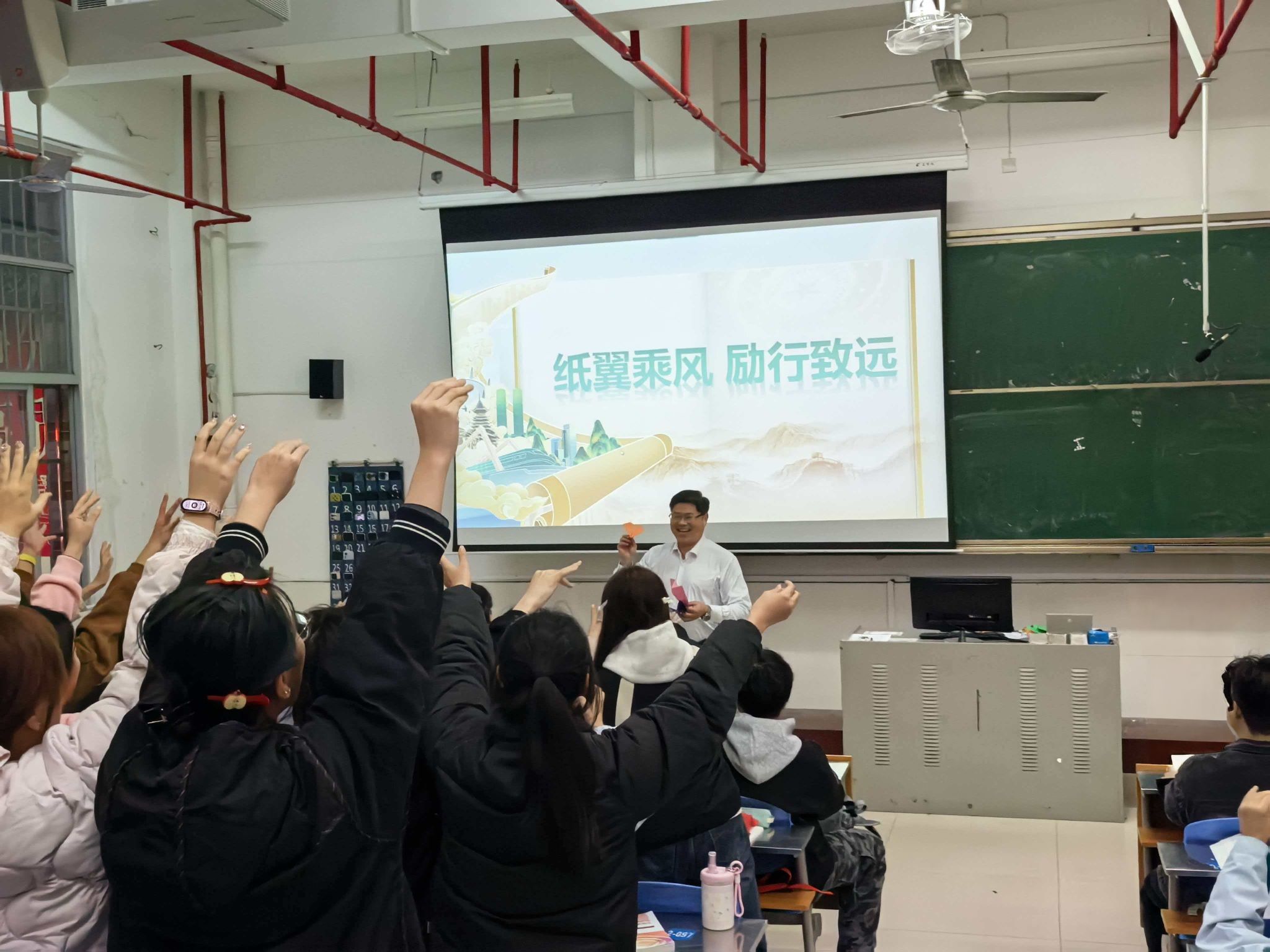 课堂的最后,张书记结合护理专业学生如何助力实现“十五五”目标等问题,向学生提出要扎根基层医疗、深耕康养领域、助力公共卫生、适配多元业态、锤炼专业本领等五个方面要求建议,更是别出心裁,将写满勉励语的纸飞机飞给学生,希望学生能够像纸飞机一样,乘风破浪、励行致远!