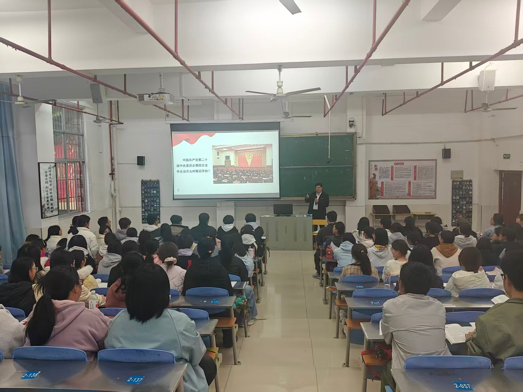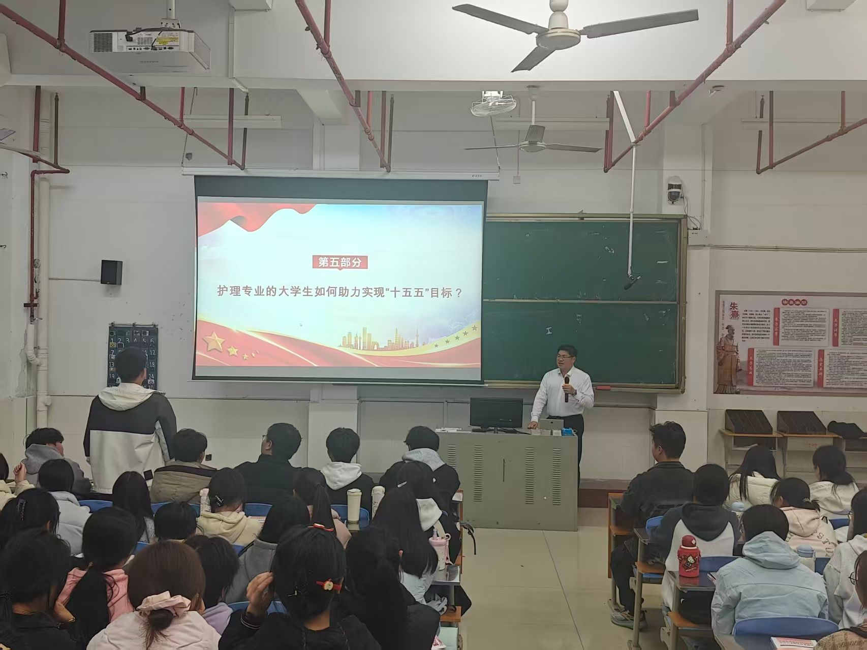 在课堂上,张书记向大家阐述了党的二十届四中全会召开的重要意义、十四五”时期经济社会发展的重大成就、“十五五”期间的形势与优势、“十五五”规划的原则与发展目标,并结合护理专业拓展相关的案例、故事以及学校发展建设情况,内容详实丰富。
