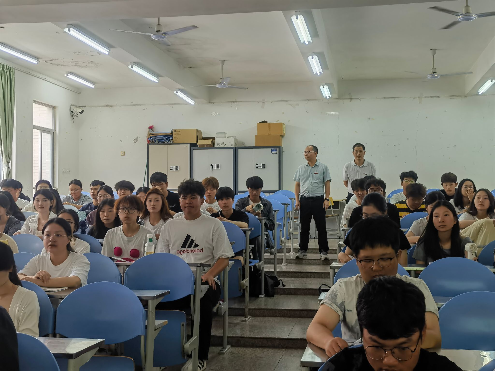 在巡课听课过程中,马克思主义学院副院长陈锡腾、教务处处长丁长峰一行深入教学一线,实地察看了军事理论授课班级的课堂实况,细致询问了教学安排、学生出勤等情况,发现各班级课堂秩序井然,学生精神面貌饱满,教师授课准备充分,整体教学状态良好,两位领导对教师教学组织工作予以肯定。