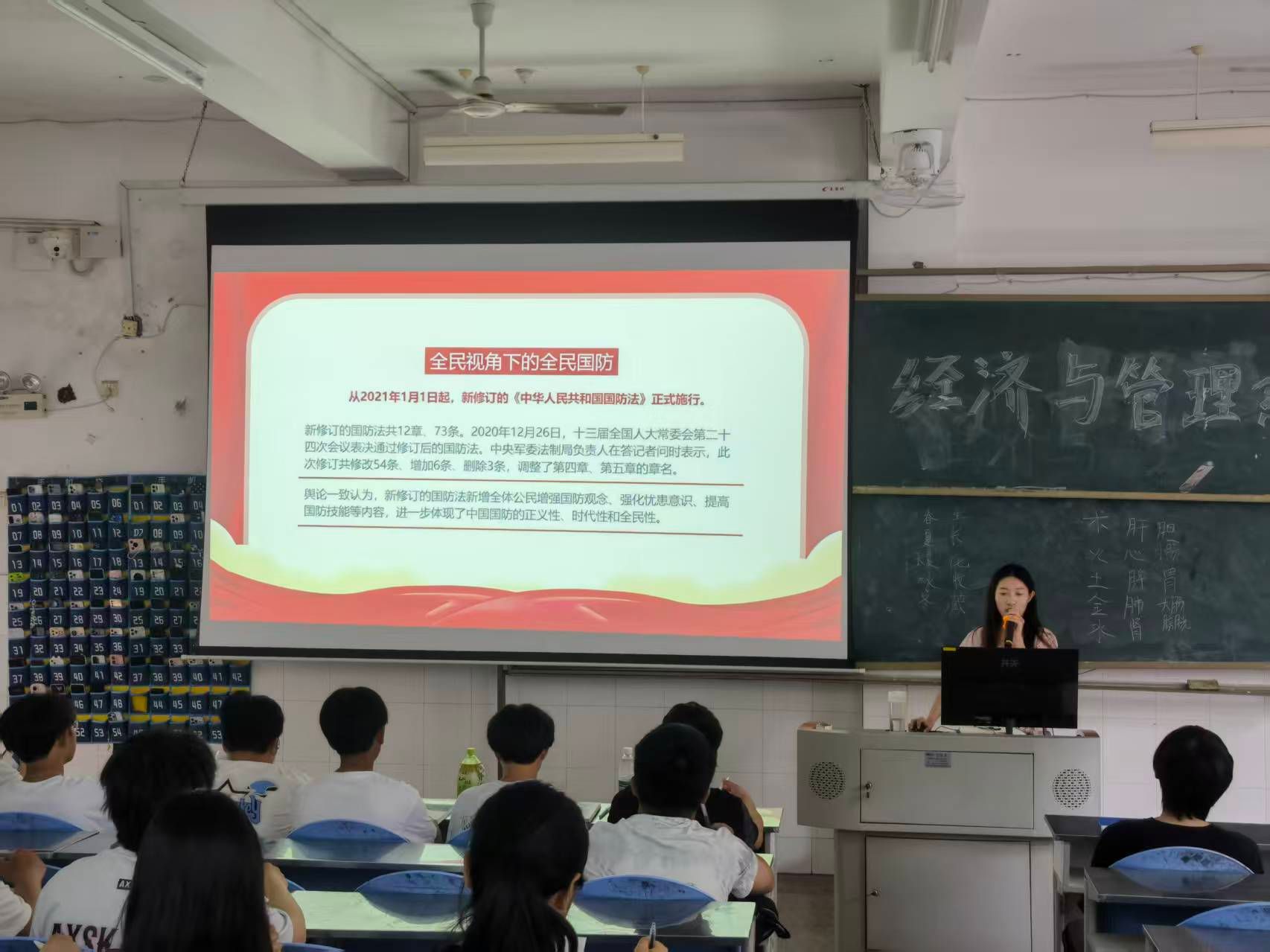 在课堂教学环节中,教师团队通过多元路径实现教学目标:或以"弘扬抗战精神 共筑国防长城"为主题解读新法,或通过影像史料阐释红色基因传承,或结合征兵工作解析兵役法规,或借助政论片强调党的领导原则,形成了内容丰富、形式多样的教学体系。授课教师多样化的授课方式,让军事理论课不再是枯燥的知识灌输,而是成为集历史回顾、法律解读、政策宣讲于一体的综合性教育课堂。不仅让《中华人民共和国国防教育法》及相关法律知识深入人心,更让学生在回顾抗战历史、感悟抗战精神的过程中,进一步增强了国防意识和法治观念。