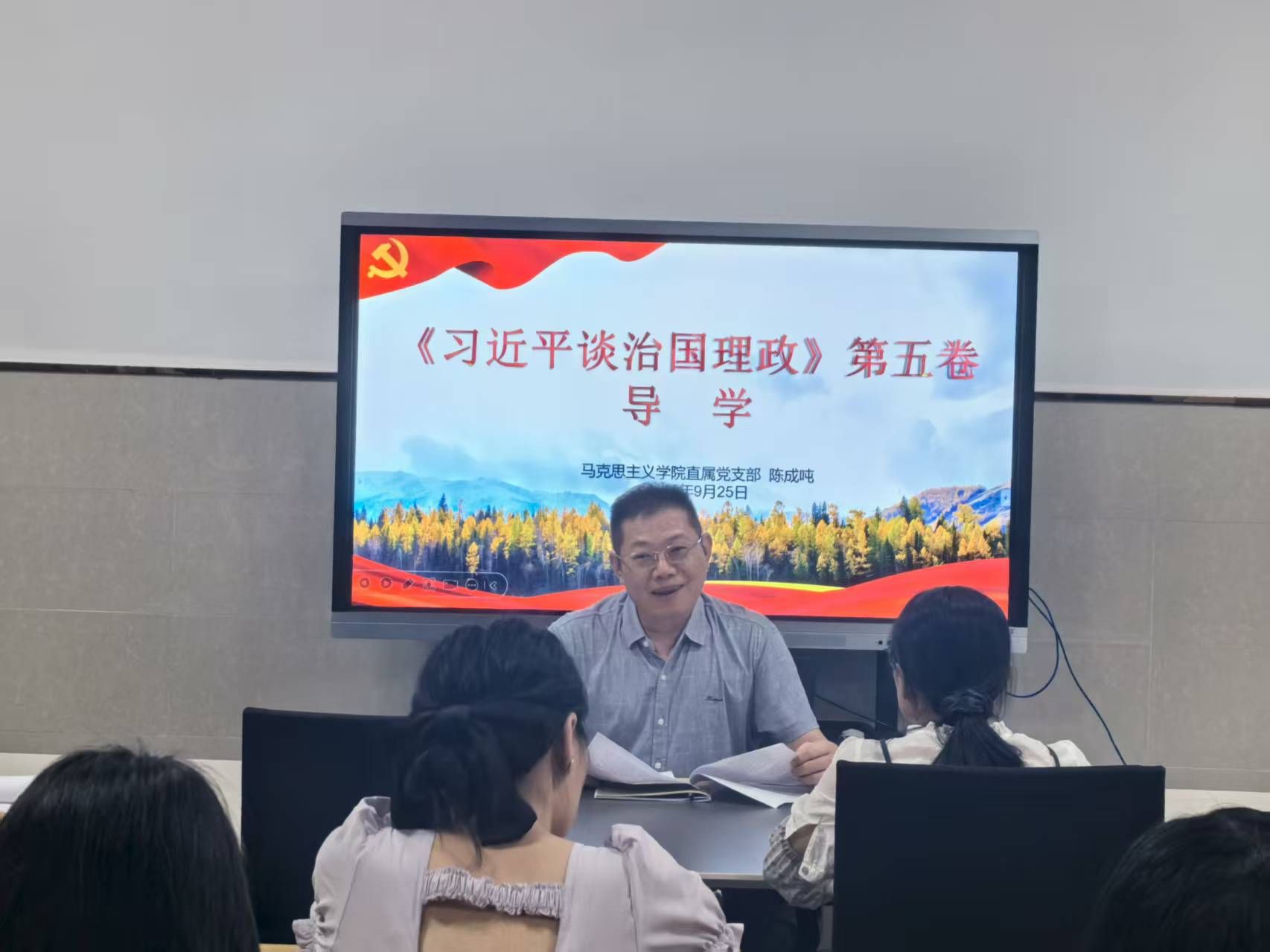 9月25日,马克思主义学院直属党支部开展《习近平谈治国理政》第五卷导学专题党课。《习近平谈治国理政》第五卷是新时代中国共产党人坚持和发展中国特色社会主义的最新理论结晶,是对党的二十大以来党领导人民推进中国式现代化伟大实践的科学总结,是全面系统反映习近平新时代中国特色社会主义思想最新成果的权威教材。