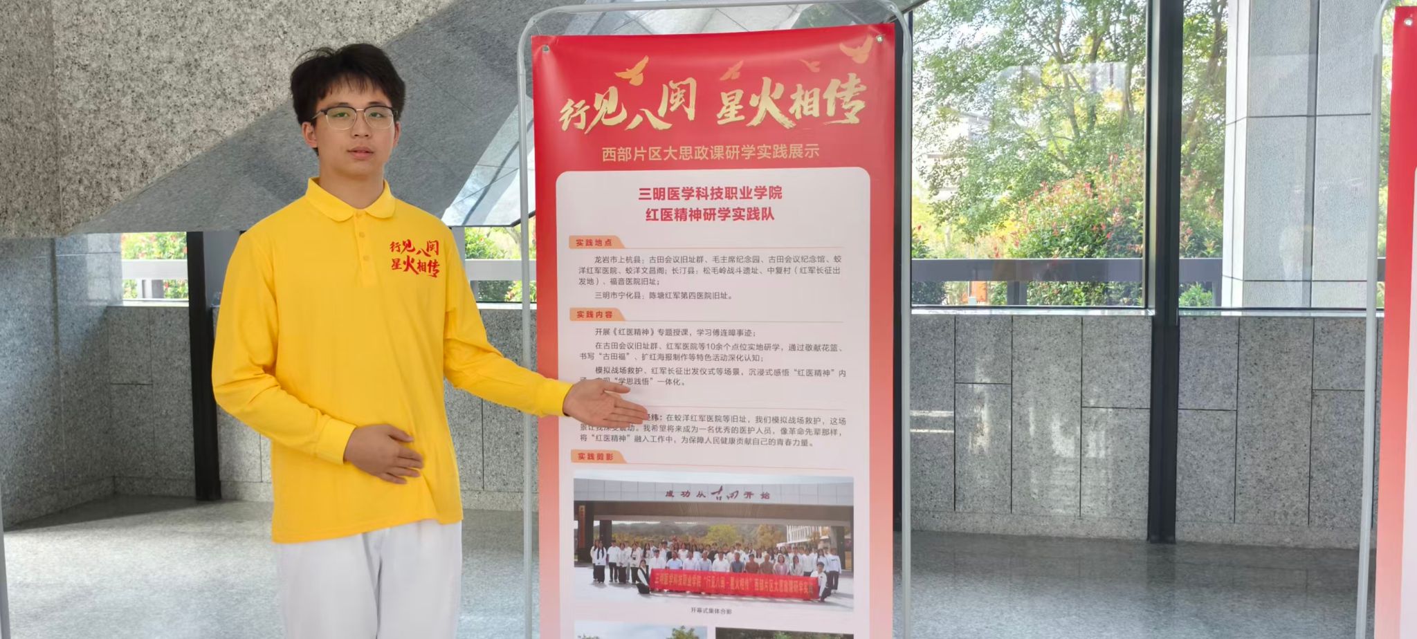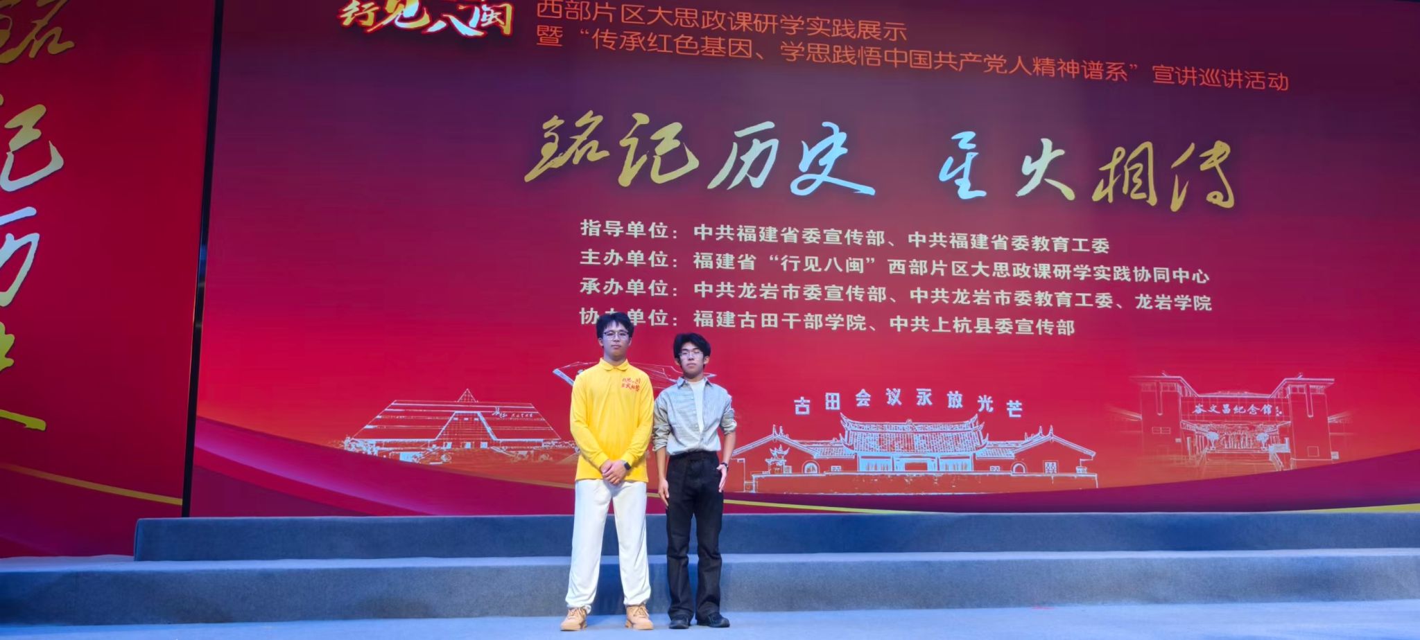 10月31日,“行见八闽”大思政课研学实践圈(西部片区)建设推进会暨“铭记历史•星火相传”主题研学实践展示活动在龙岩市古田干部学院举行。我院学生代表阙子钦和侯嘉祺两位同学在现场通过研学实践展板讲解,向与会嘉宾们介绍了我院在“行见八闽”实践研学活动方面取得的成果,得到热烈反响。
