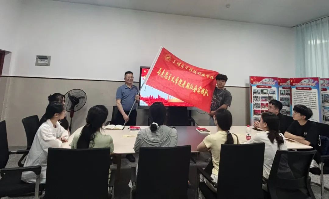 7月12日下午,实践活动出征仪式暨行前动员会在马院会议室举行,带队老师和实践队员参加。马克思主义学院陈成吨院长从如何在社会大课堂中讲好习近平新时代中国特色社会主义思想的时代价值和实践意义切入,结合习近平总书记来闽来明考察重要讲话精神,为同学们作行前寄语,希望同学们在学思践悟中淬炼能力本领,带着问题去学习体悟,将学习成效转化成高质量的实践成果。同时,陈院长强调了实践期间的组织纪律、人身安全等事项要求,并为实践队授旗。